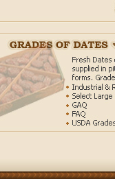 Fasil Dates are grown in Sukkur & Khairpur Districts and adjoining areas of Sing Province. These Dates are of Industrial Grade because they contain lesser amount of meat, thinner in size and have dry skin. The havesting period of these Dates is from July 8 to July 31. The shelf life of these Dates is short and therefore must be used soon and shipped immediately after havesting.